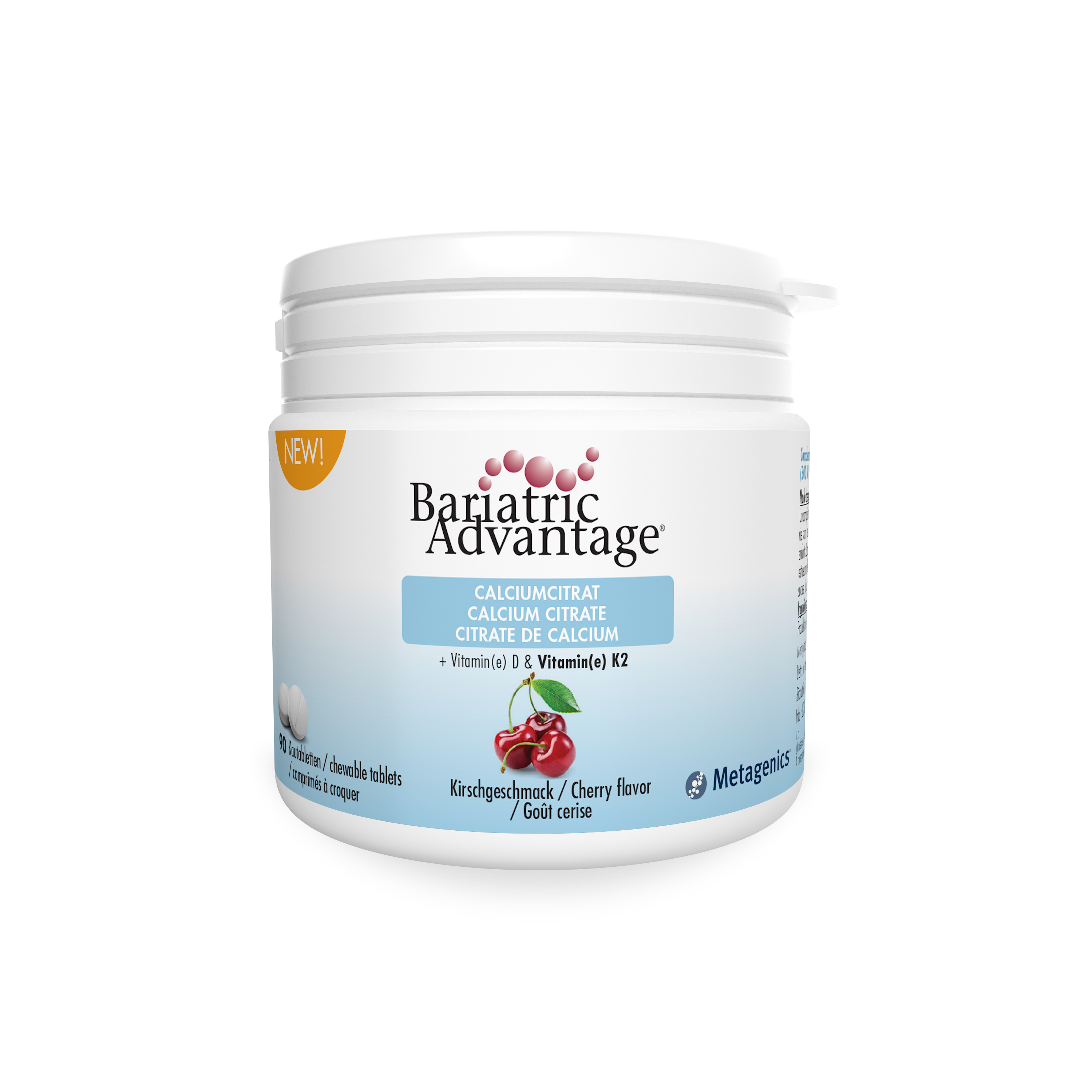 Bariatric Advantage Calcium Citrate contains vitamin D3 to promote calcium absorption and support bones, in addition to calcium, which contributes to maintaining strong bones. Vitamin K2 helps in the absorption of calcium into the bones and contributes to the maintenance of strong bones.